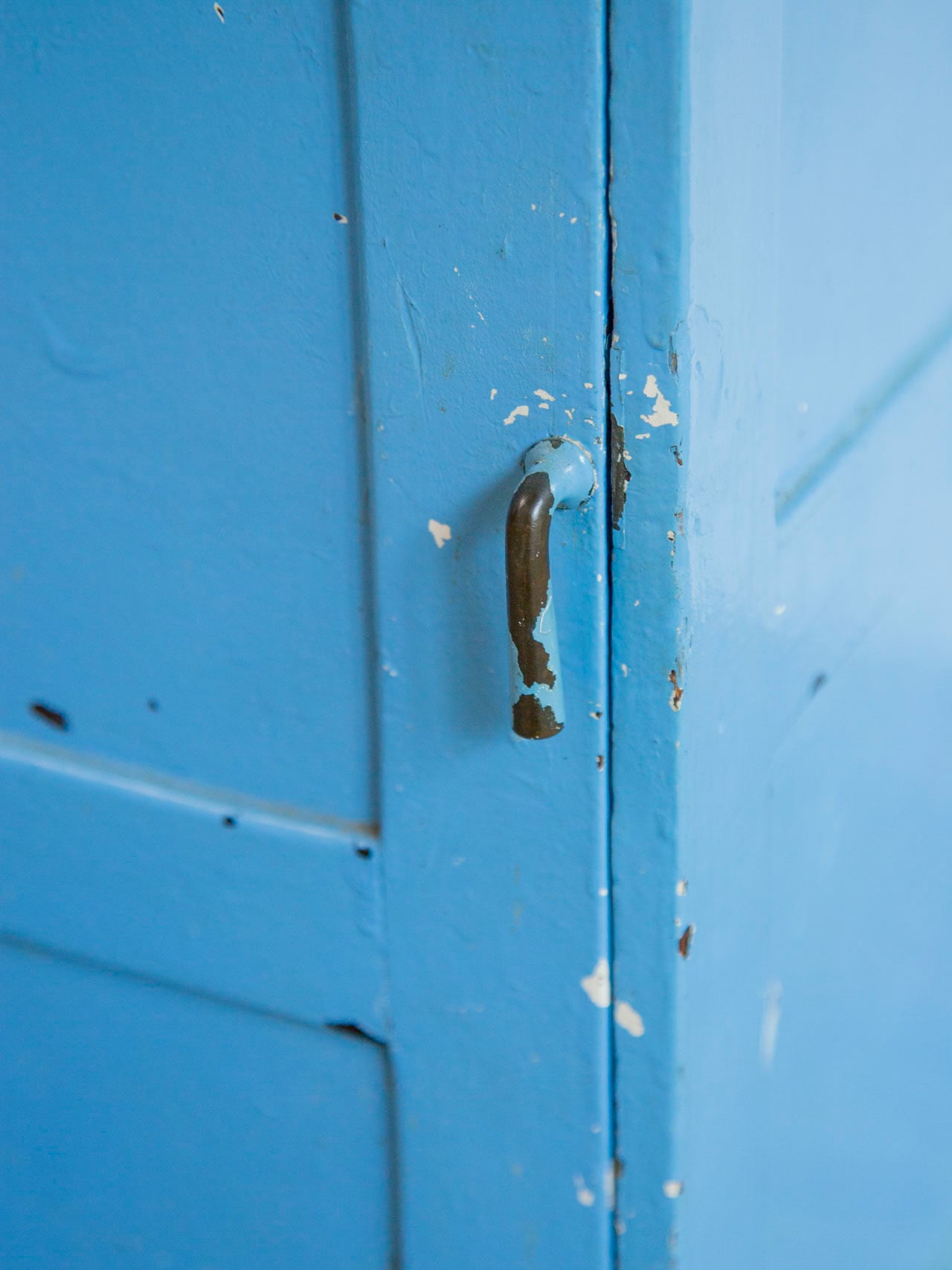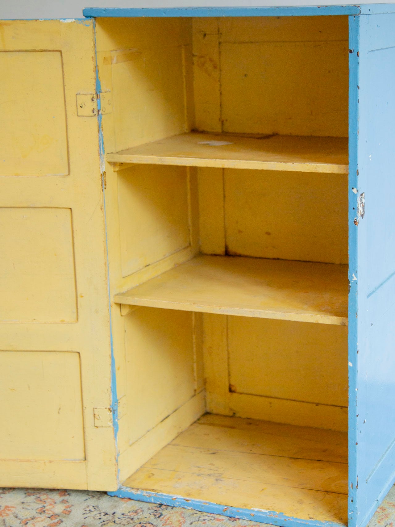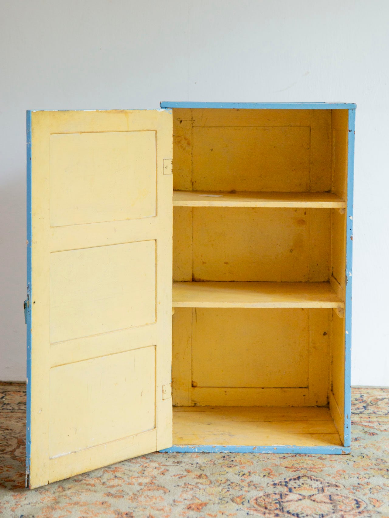ブルーペイントと鮮やかなイエローのコントラストがユニークなフランスのキャビネットです。