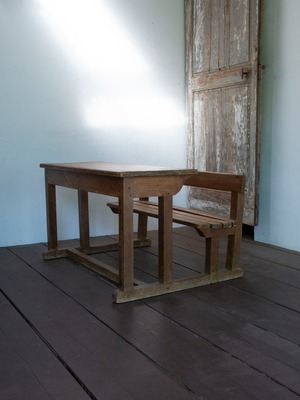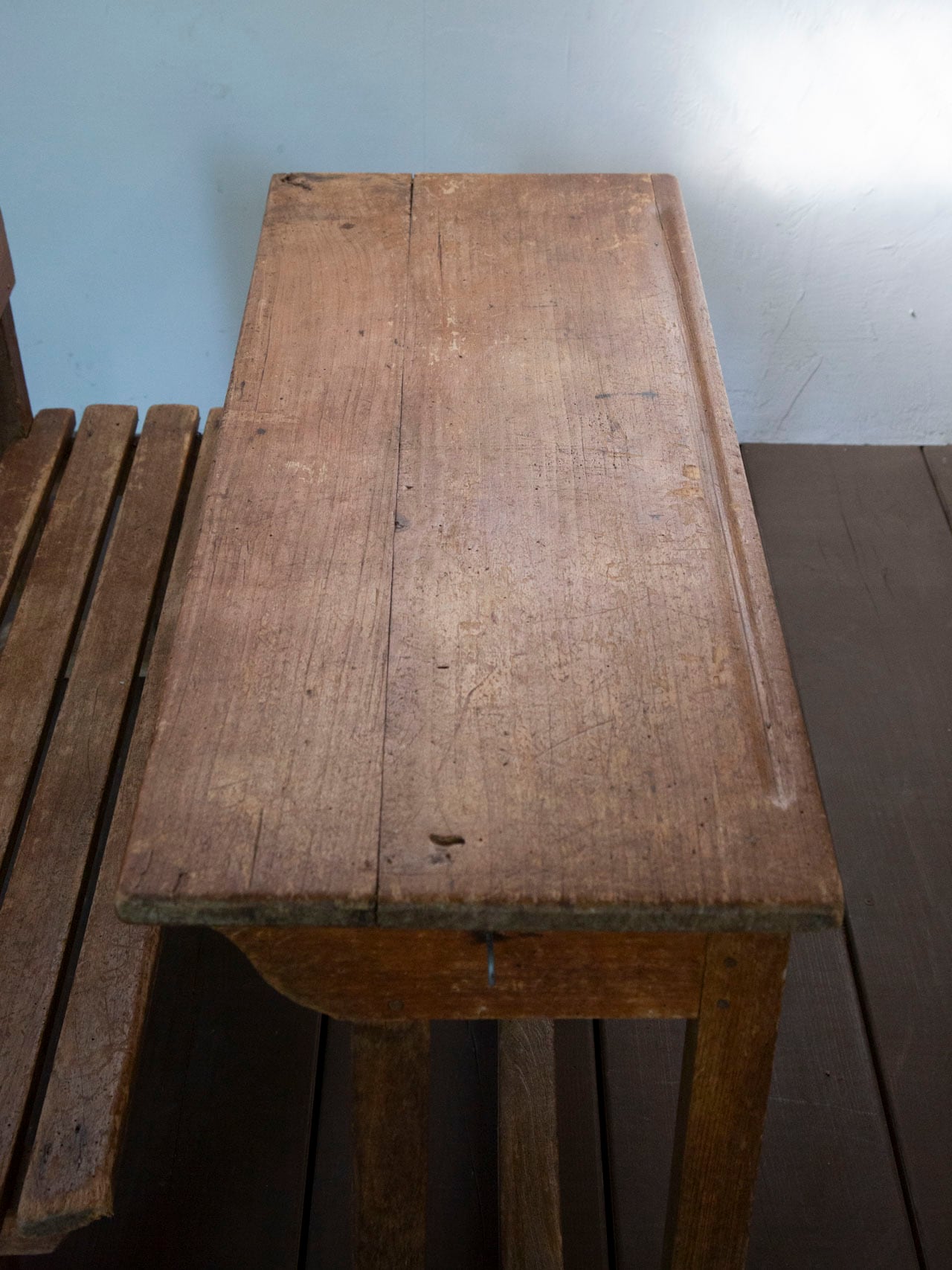 フランスの学校で使用されていた一体型の木製スクールチェア&デスクです。