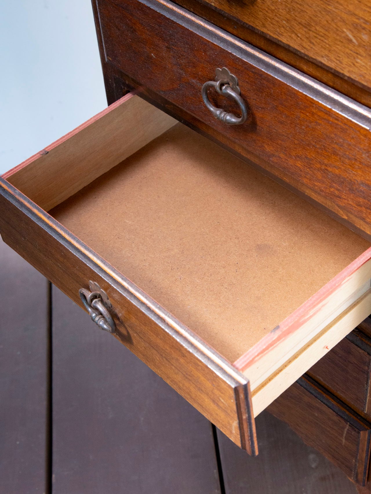 下から2段目の引き出しは、木の動きの影響により、他の引き出しと比べるとやや硬さがあります。