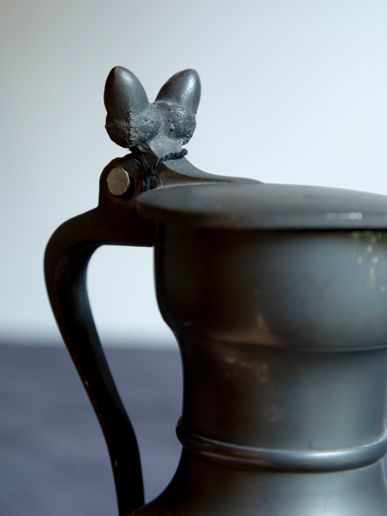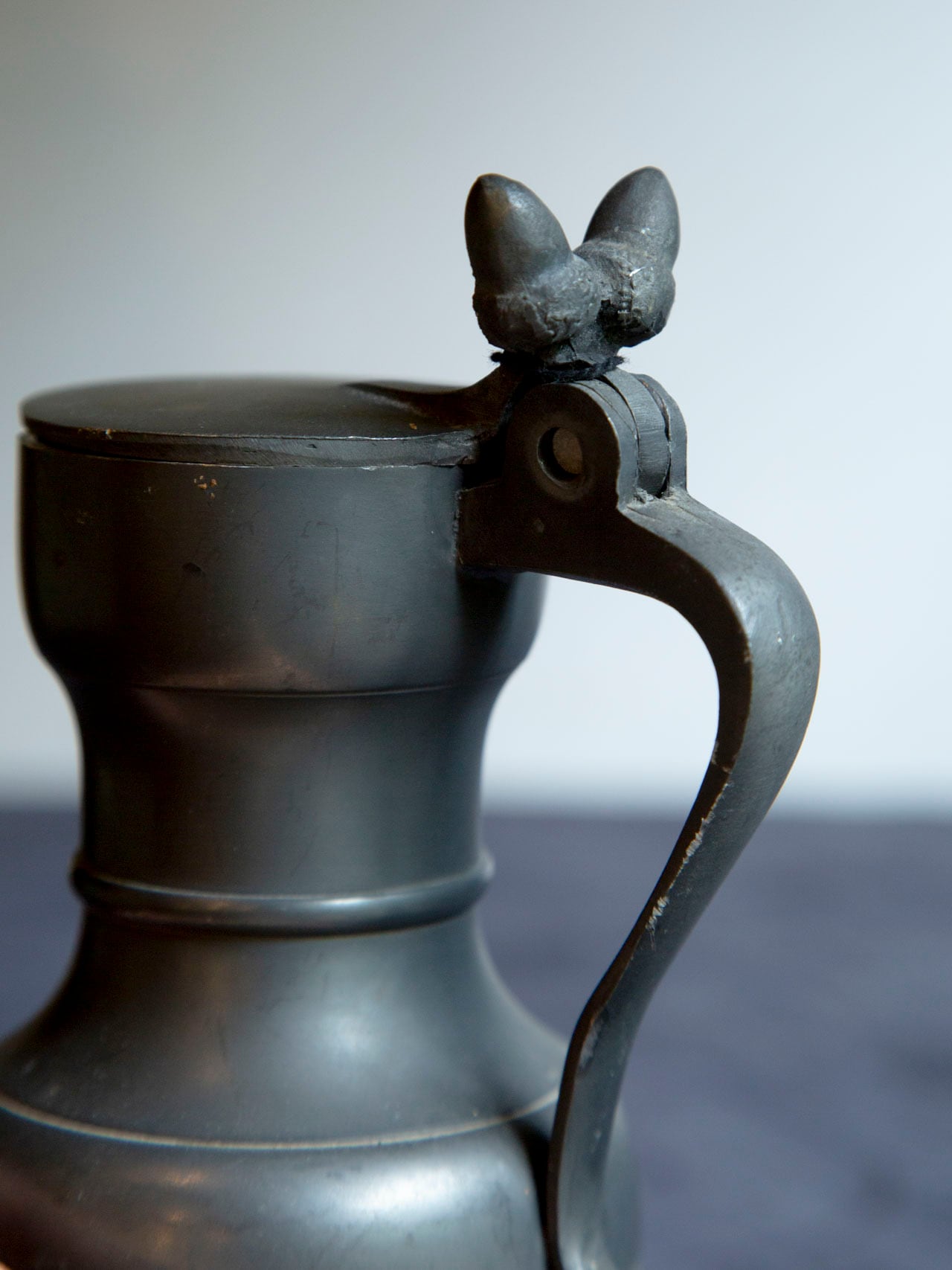 錫特有の鈍い質感で18.5cmと小柄ながら存在感があります。