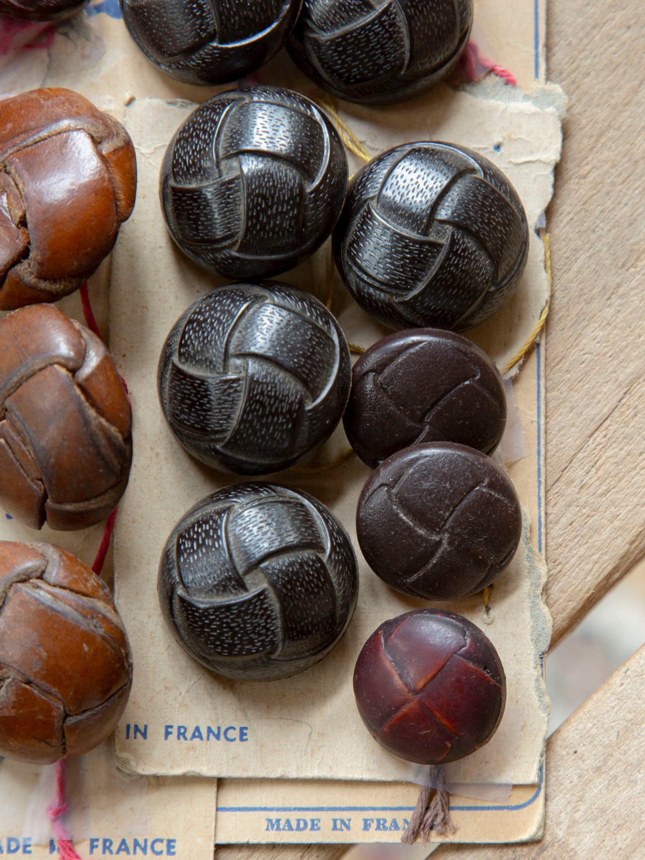 レザーボタンとレザーボタンの風合いを持ち合わせたボタンをアソートセットにしました。