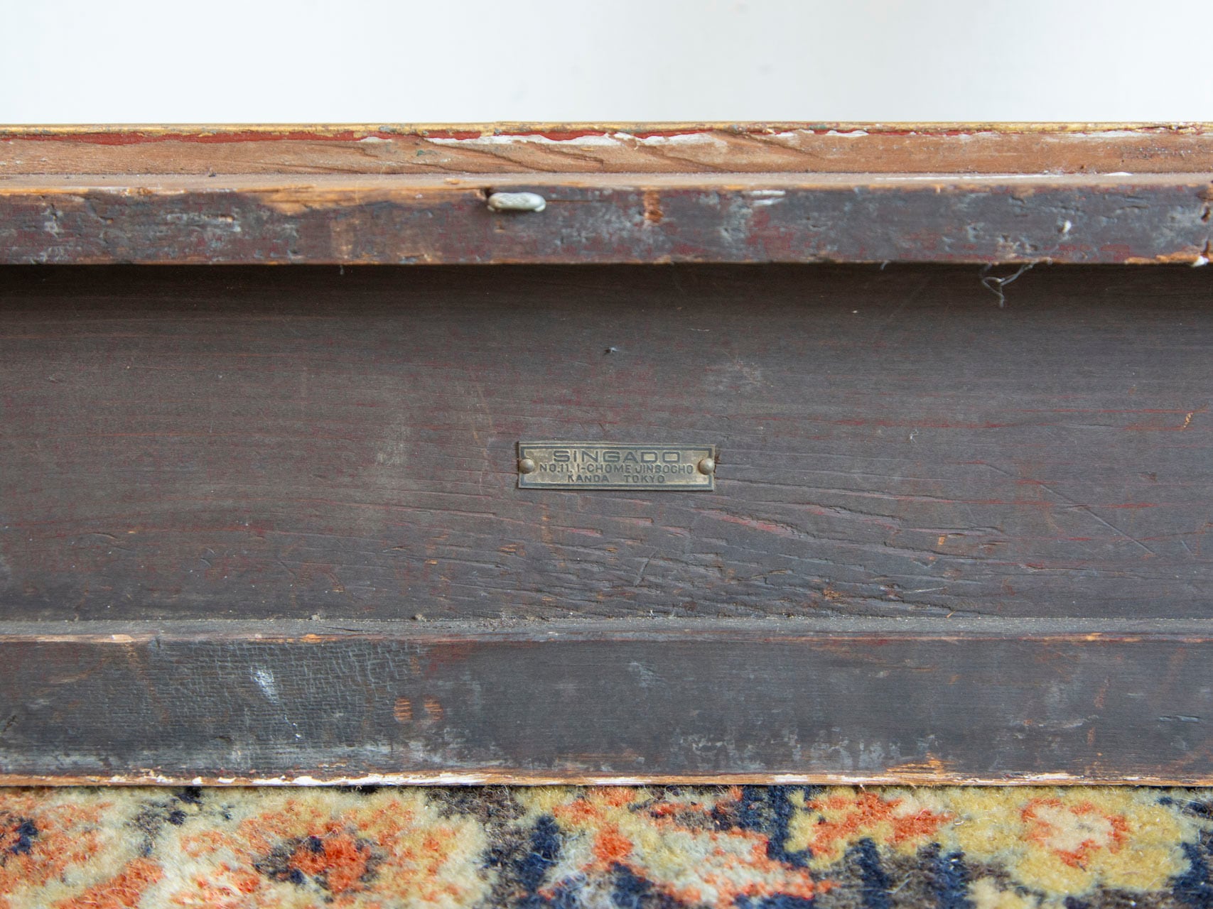 カラーはくすんだゴールド、ホワイト、ブラウン、彫刻が盛り上がってる部分に朱色が混じり、
