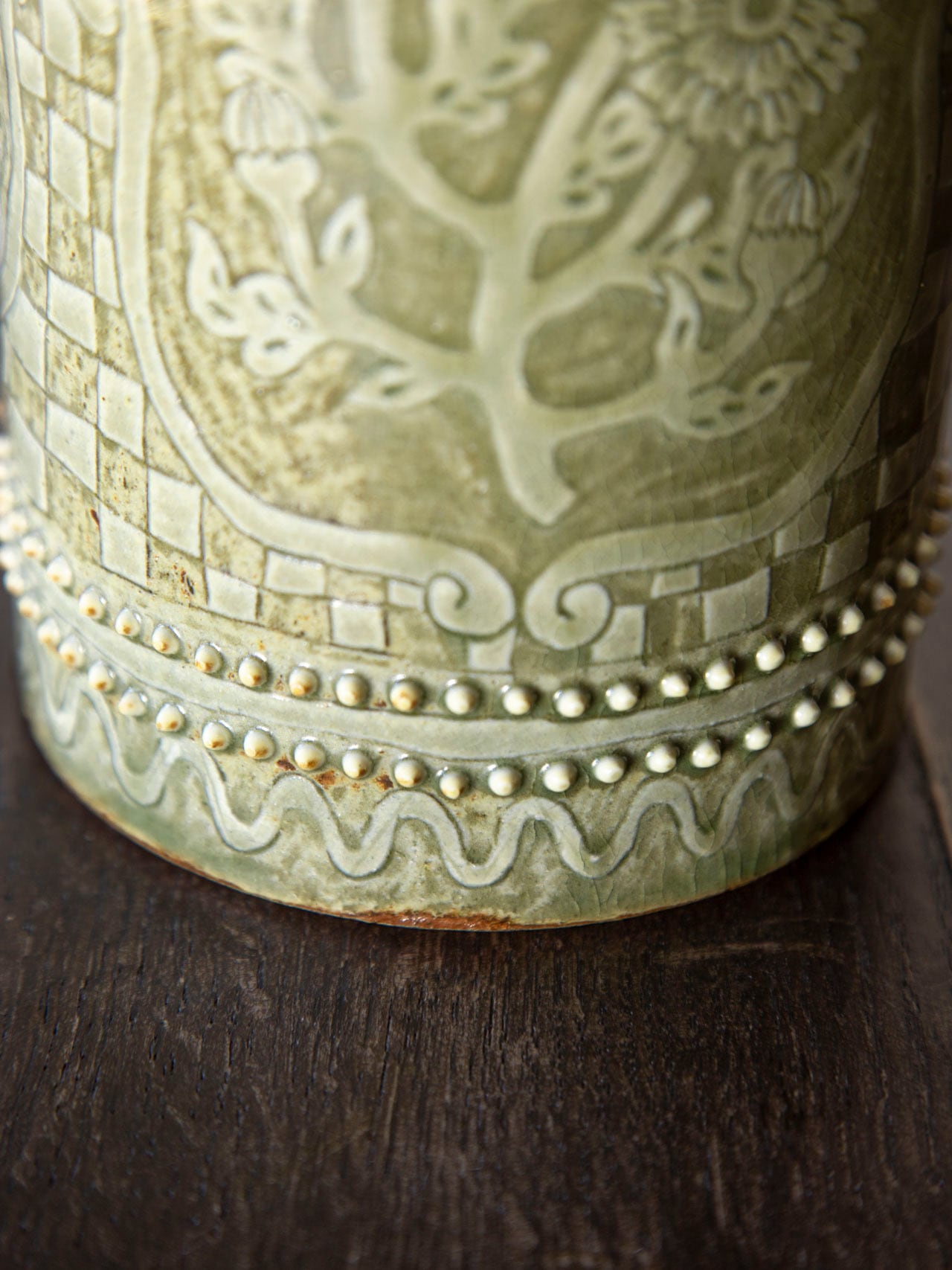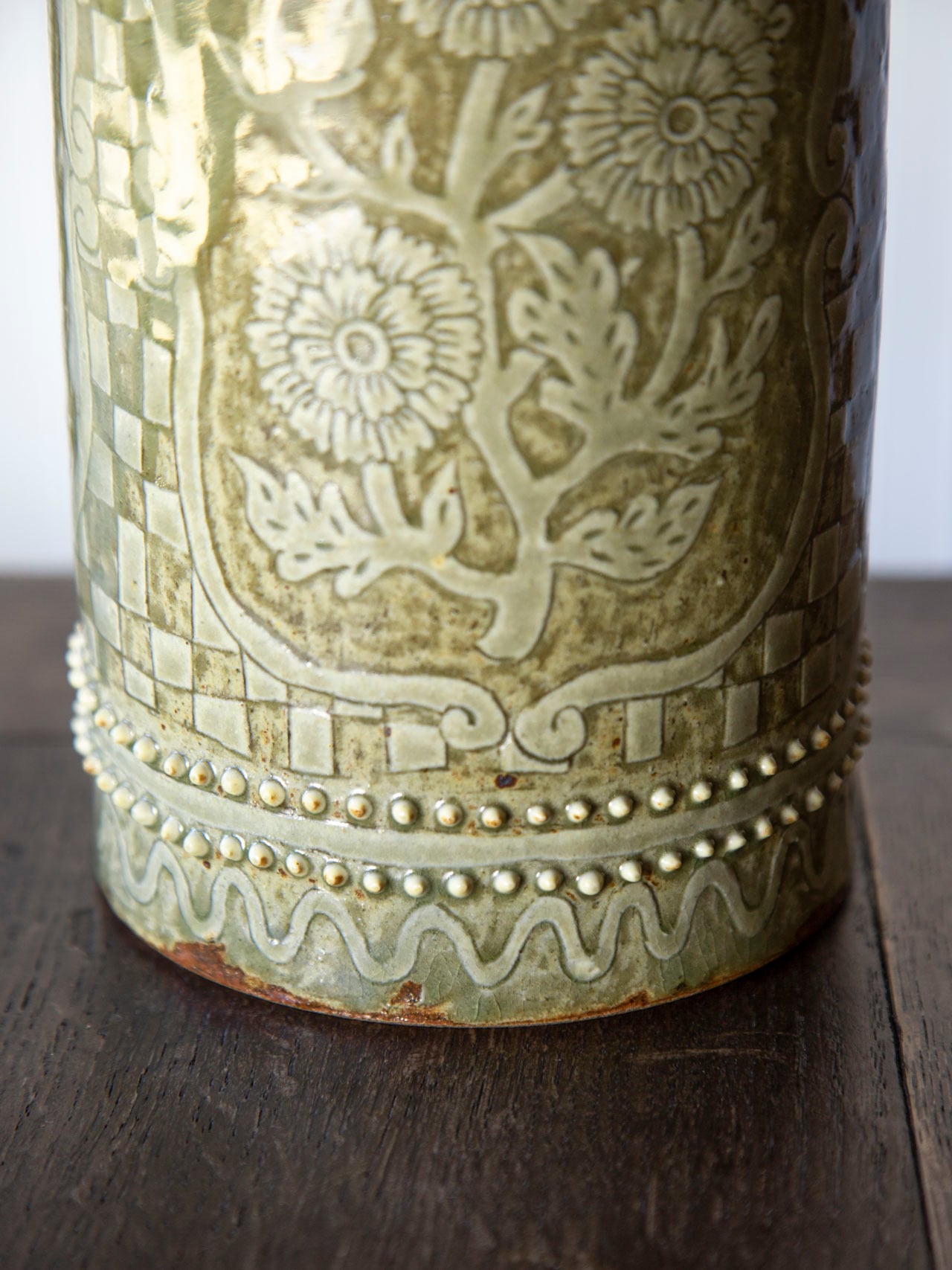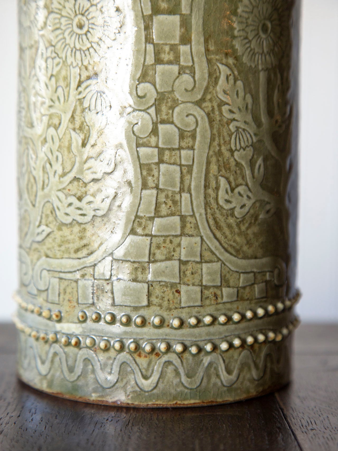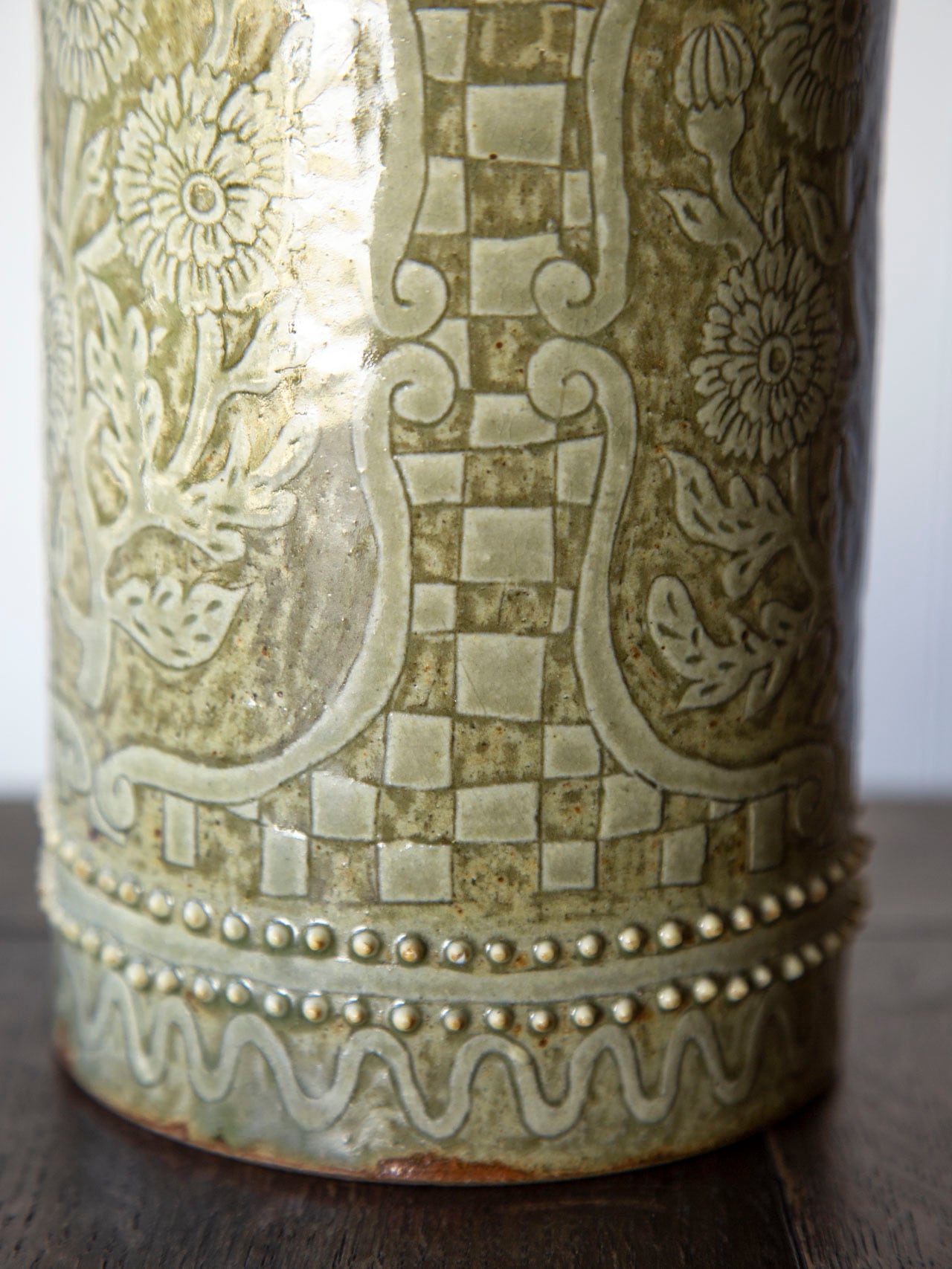 植物紋様の筒型陶器<花瓶>