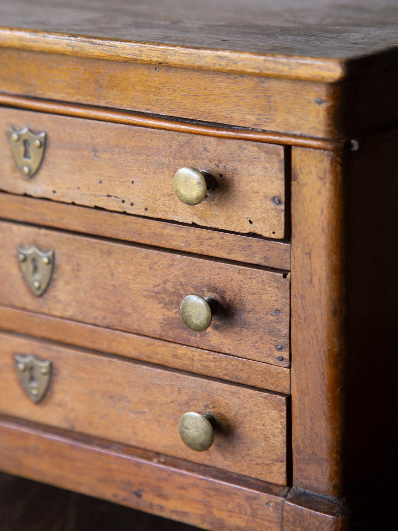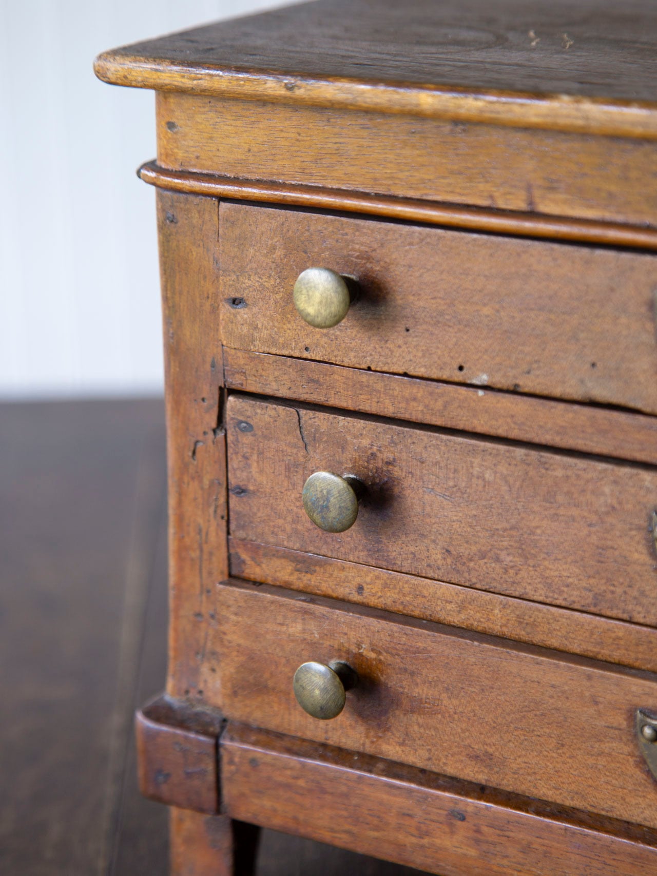 3つの引き出しのうち1つは角が欠けており、引き出しをしまう際、引っ掛かりがございます。