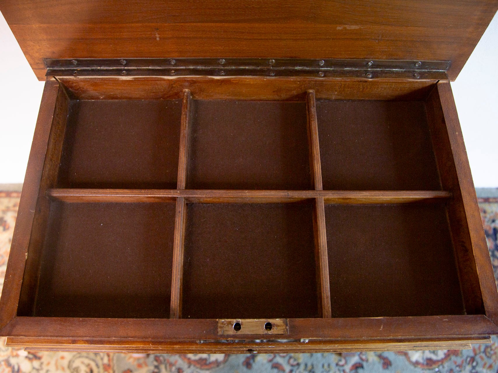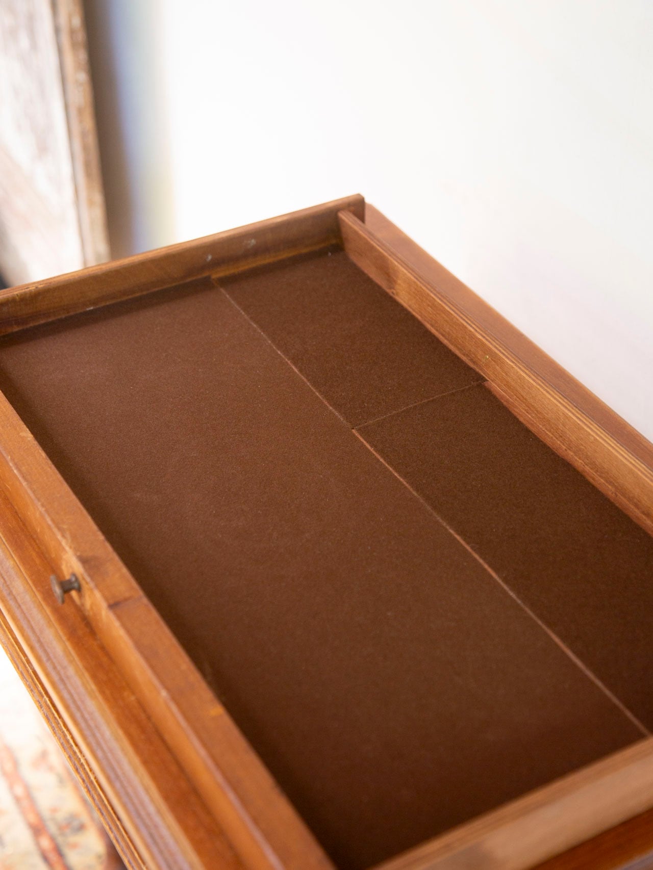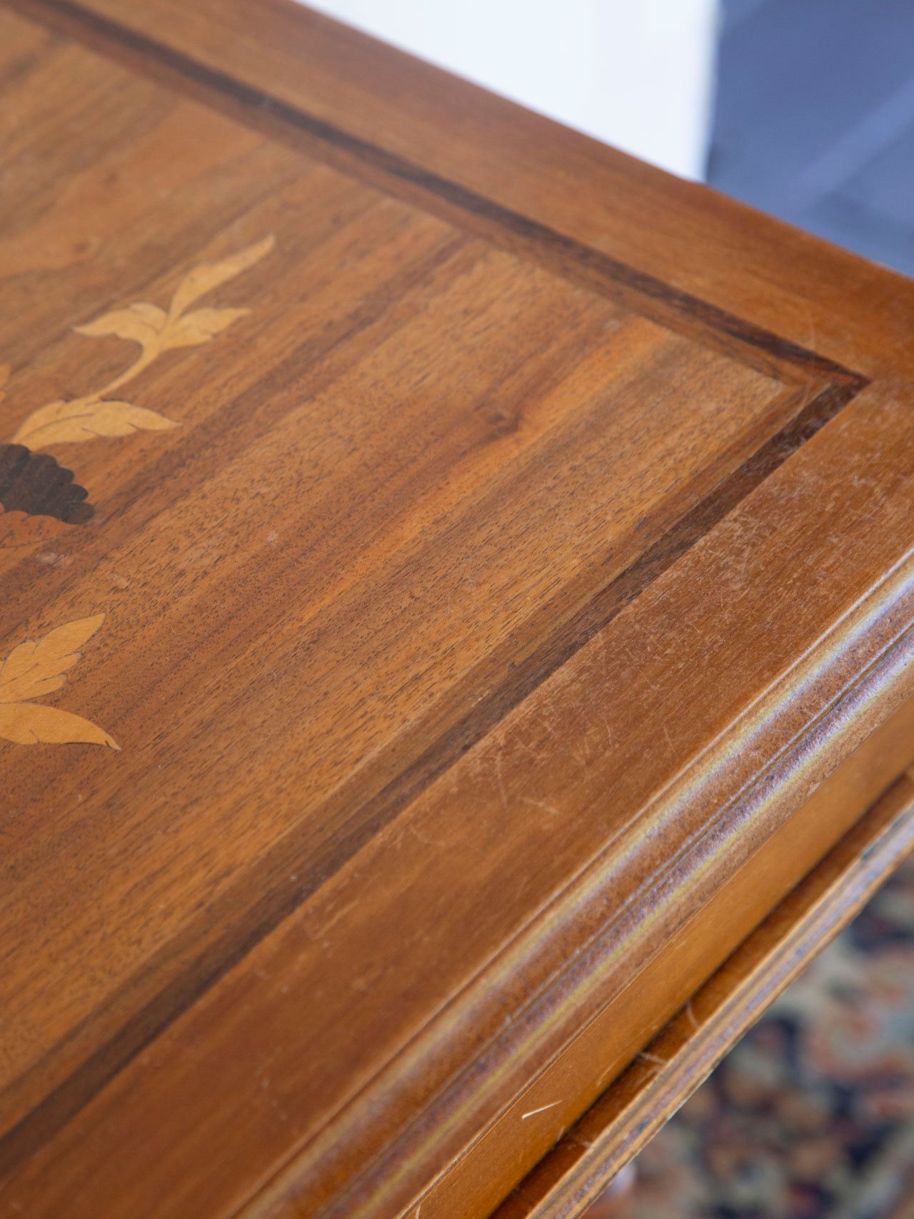 天板には花の象嵌装飾が施され、落ち着いた存在感があります。
