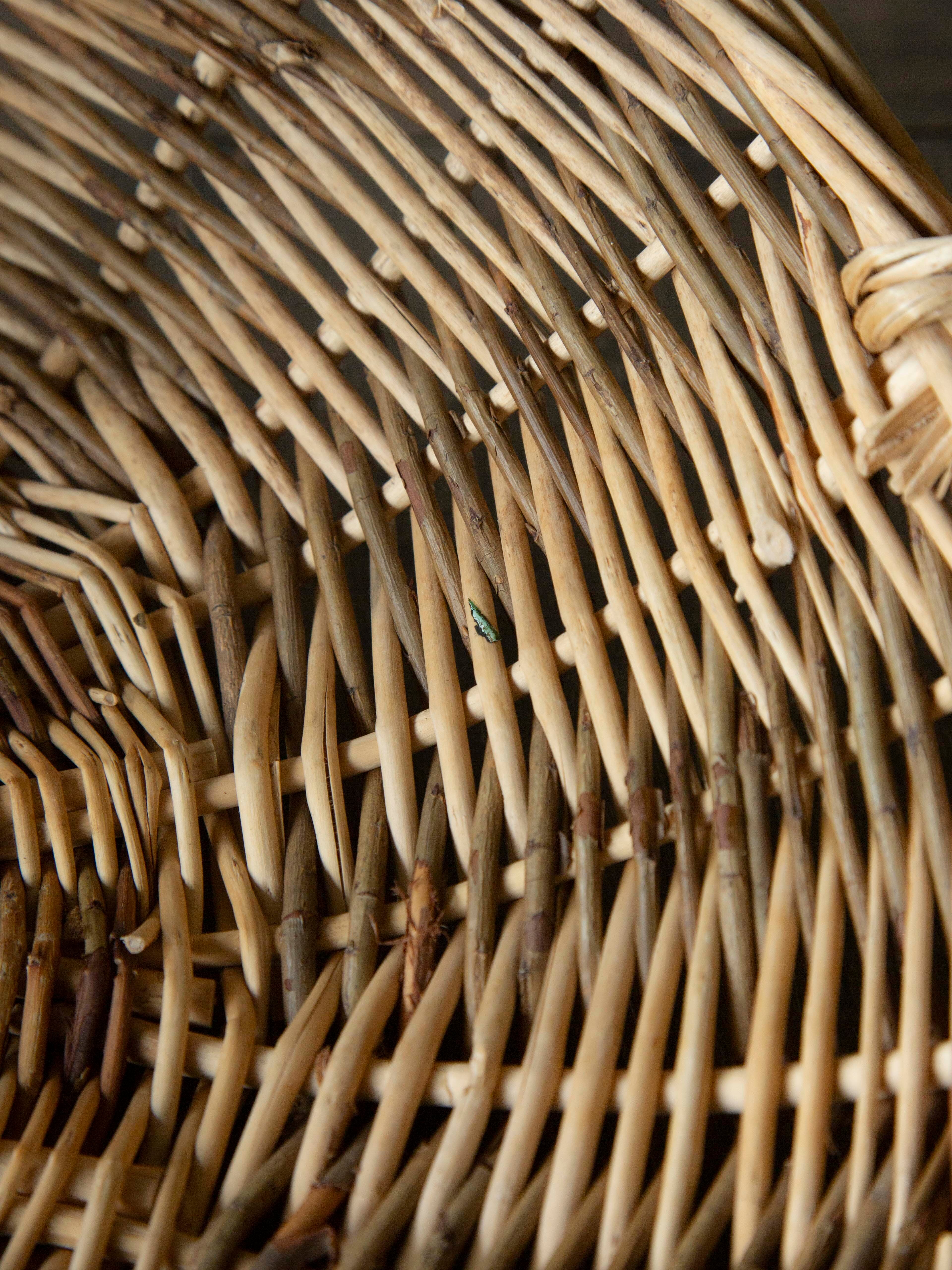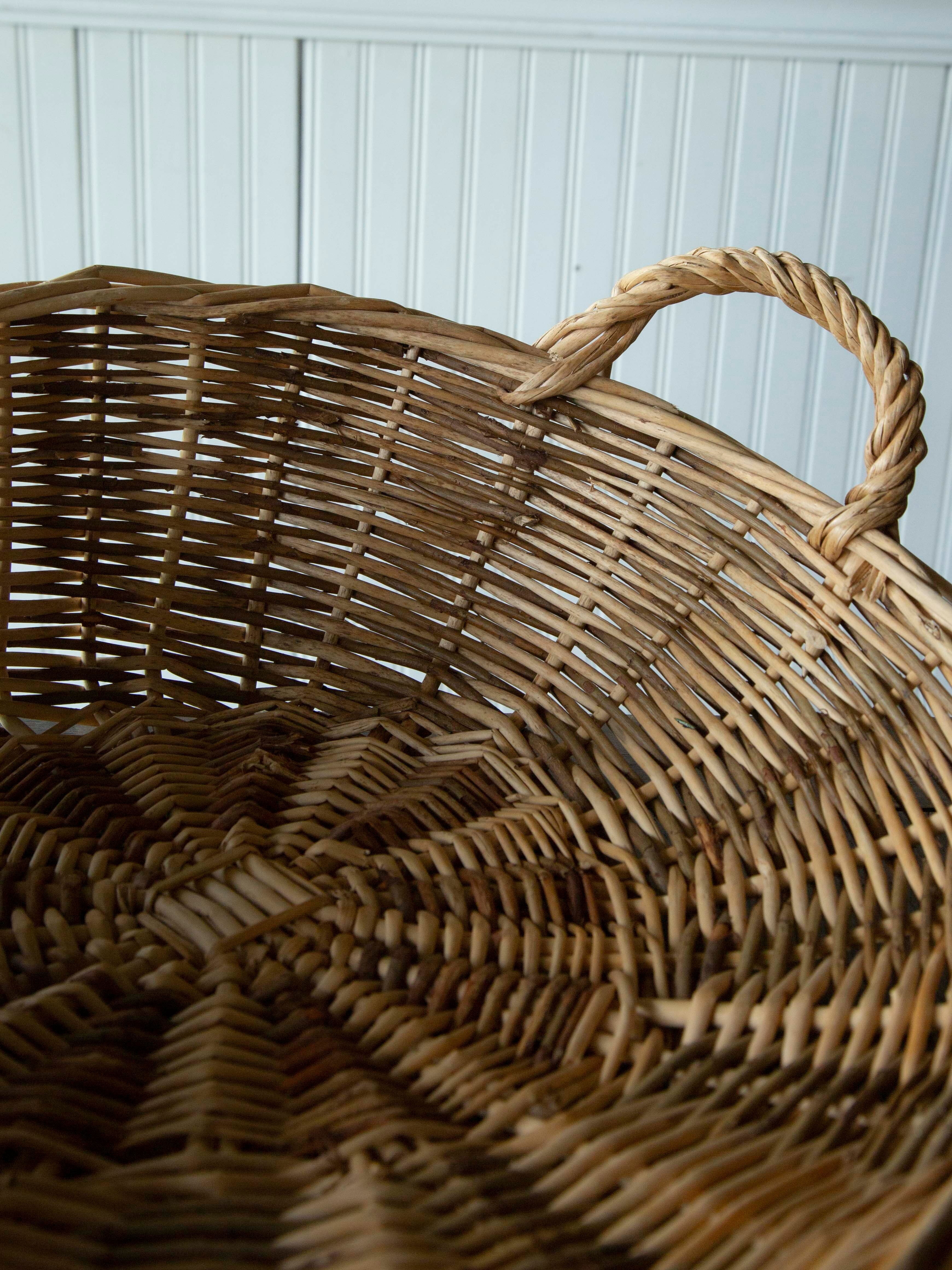 太い枝を使い、職人が手作業で編んだかごは丈夫で