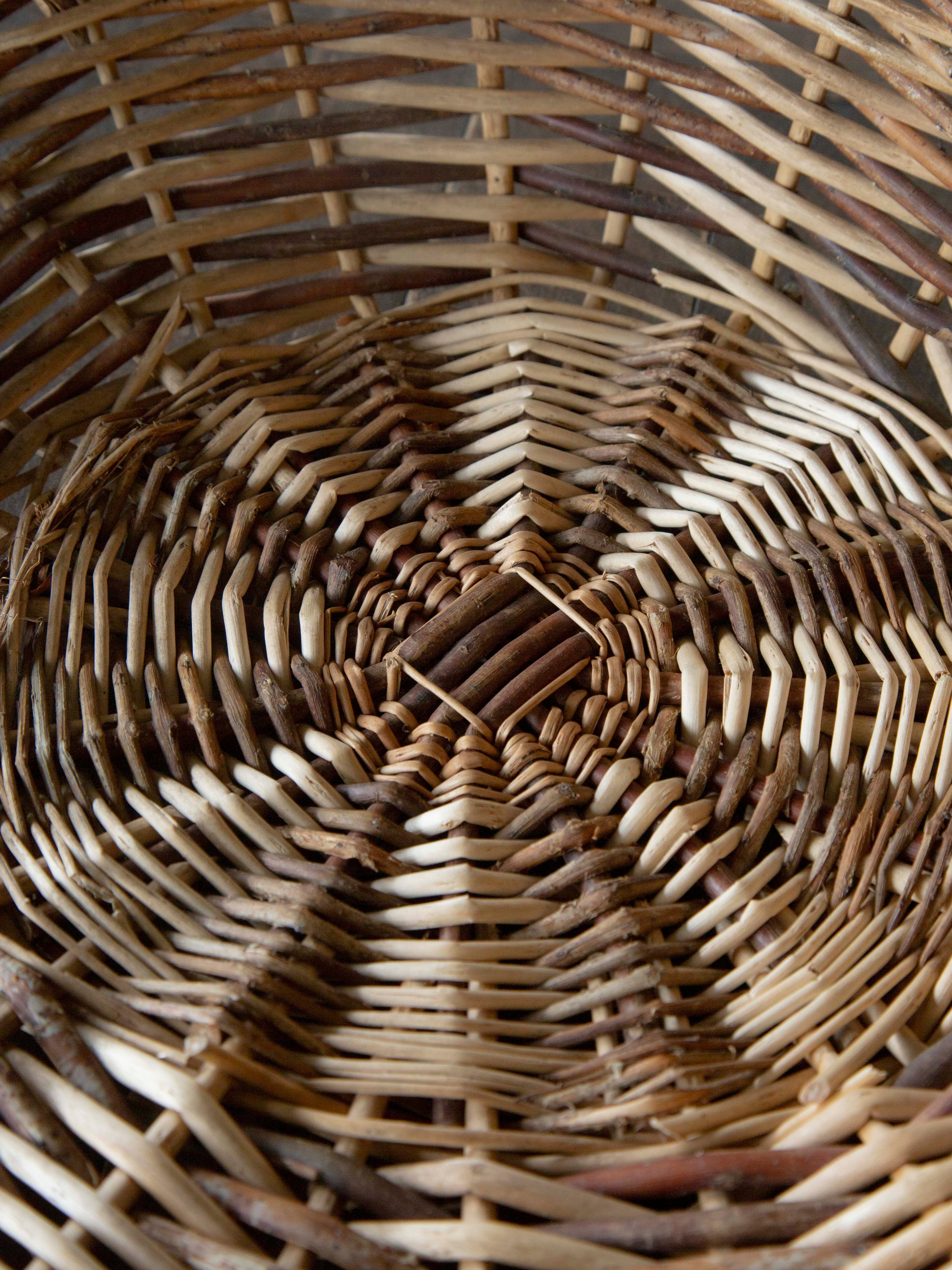 太い枝を使い、職人が手作業で編んだかごは丈夫で