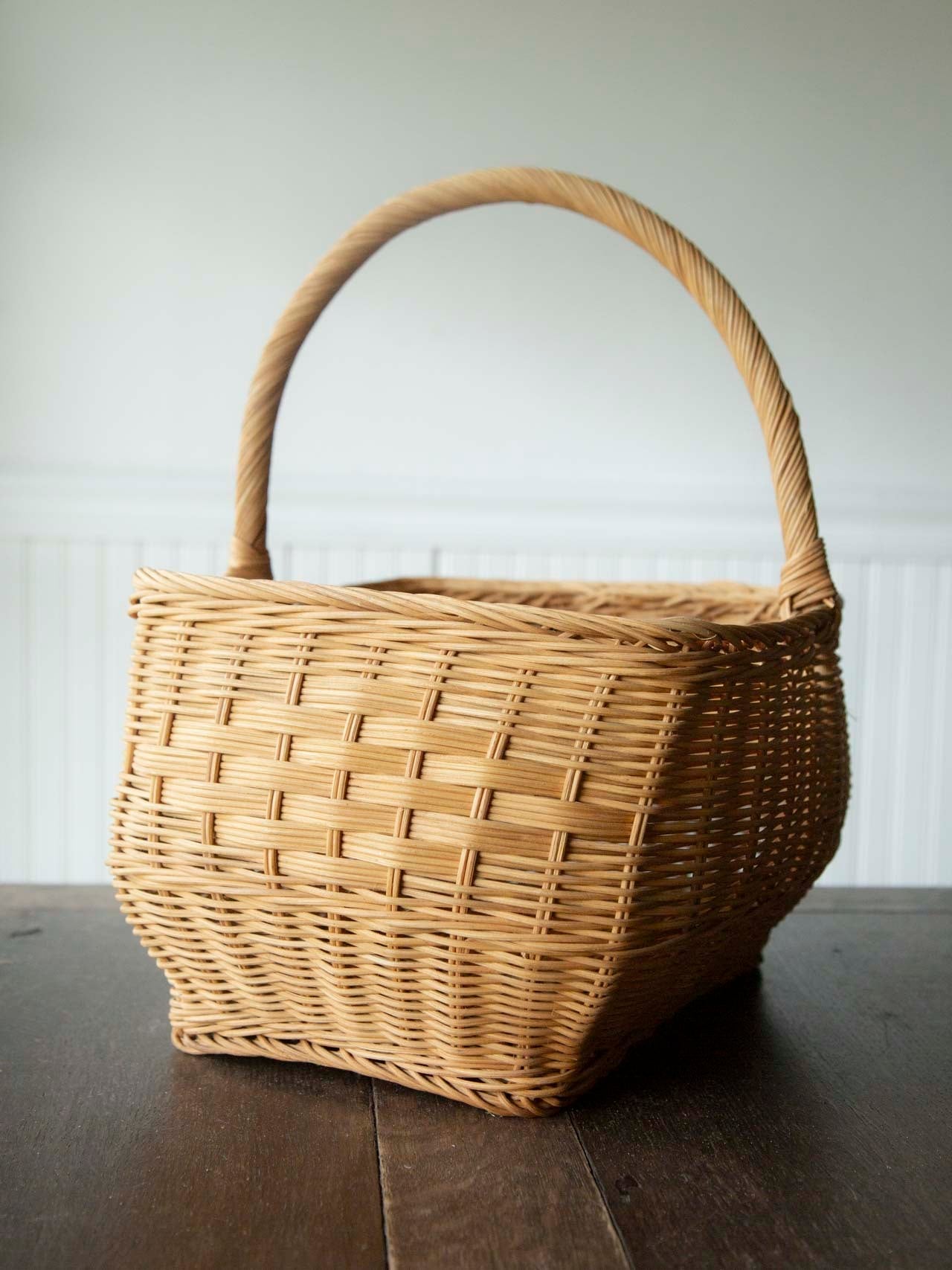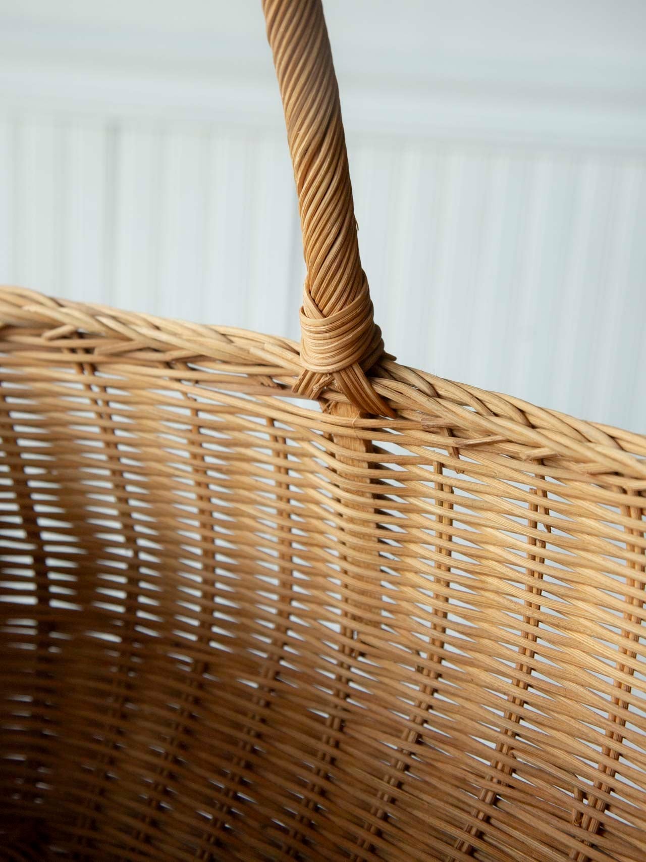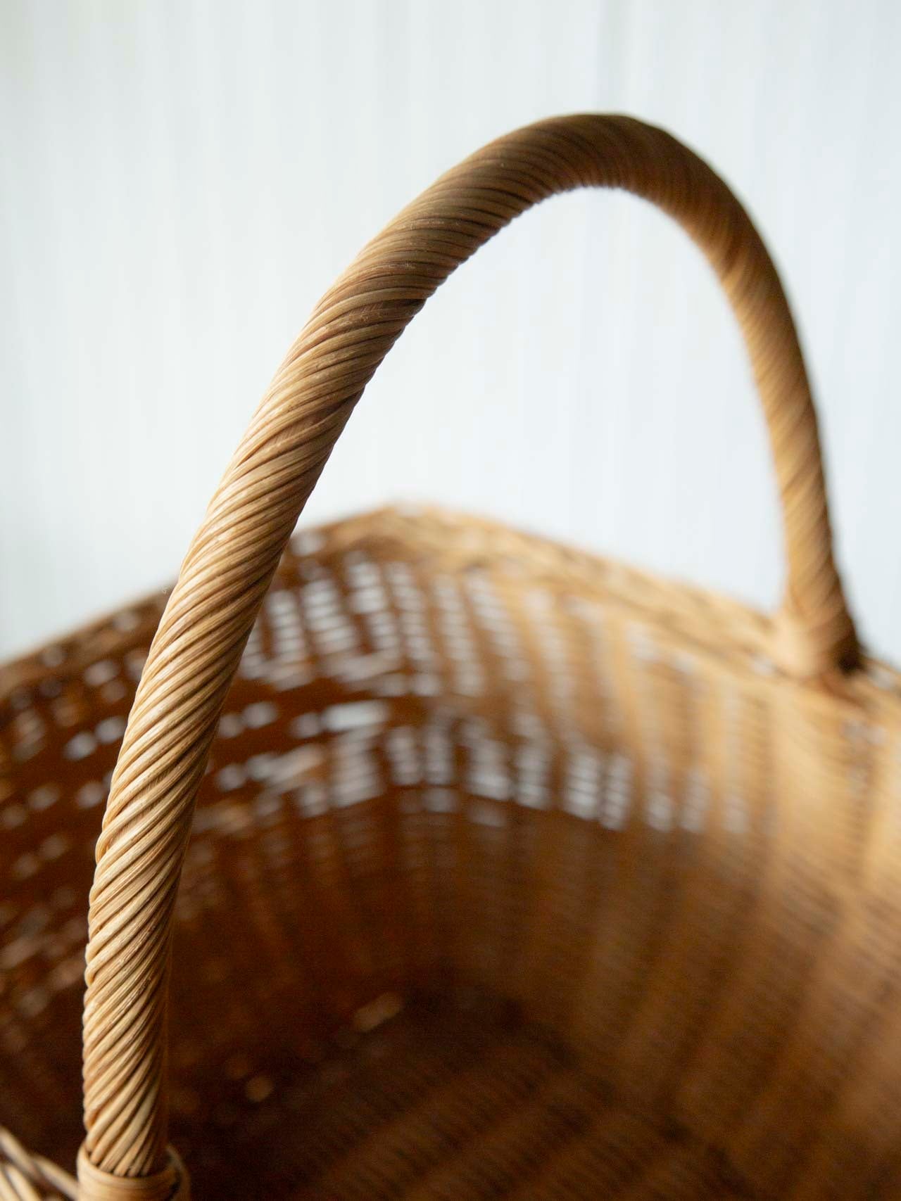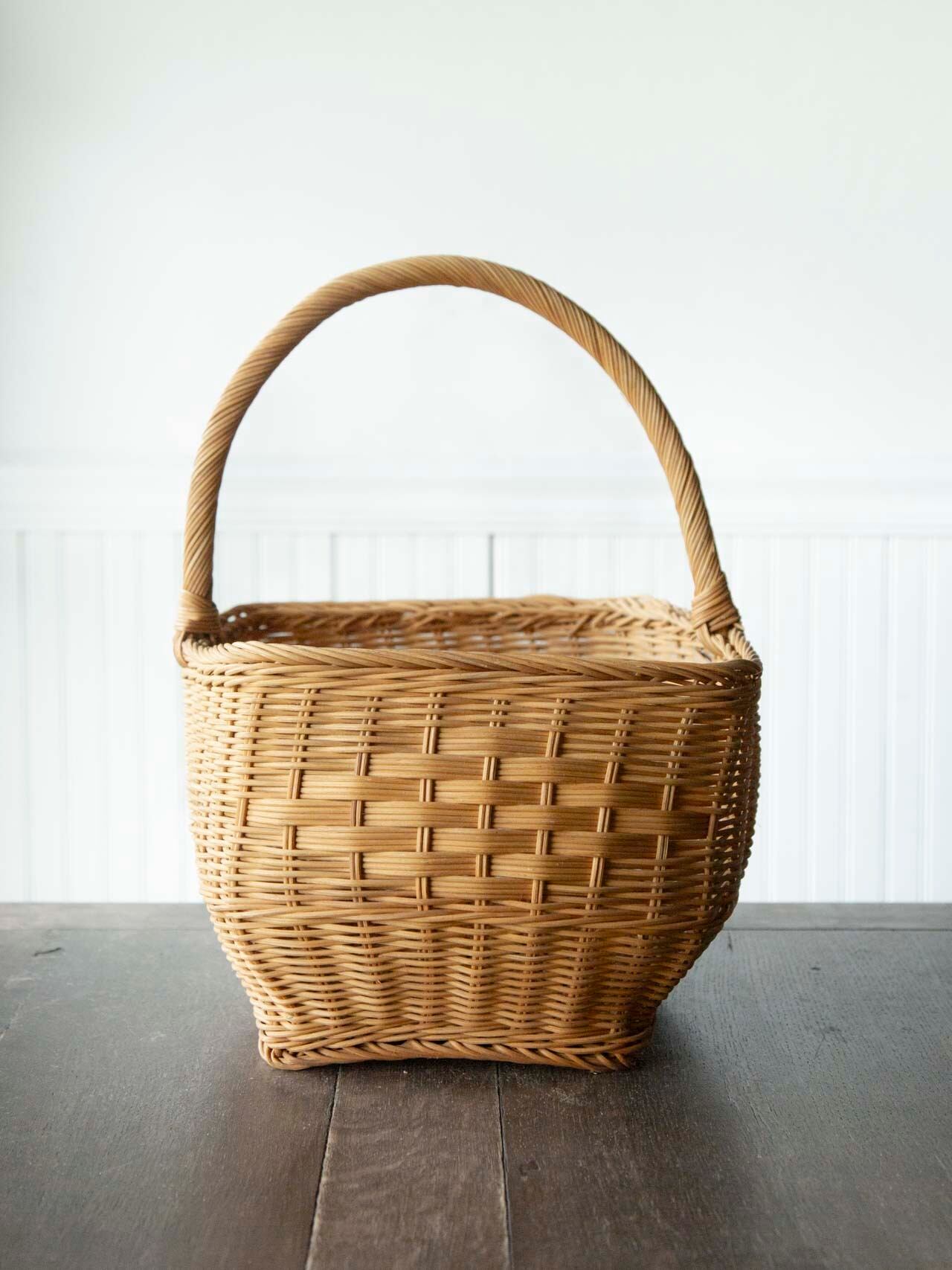 ラタン(籐)で作られたワンハンドルバスケットです。