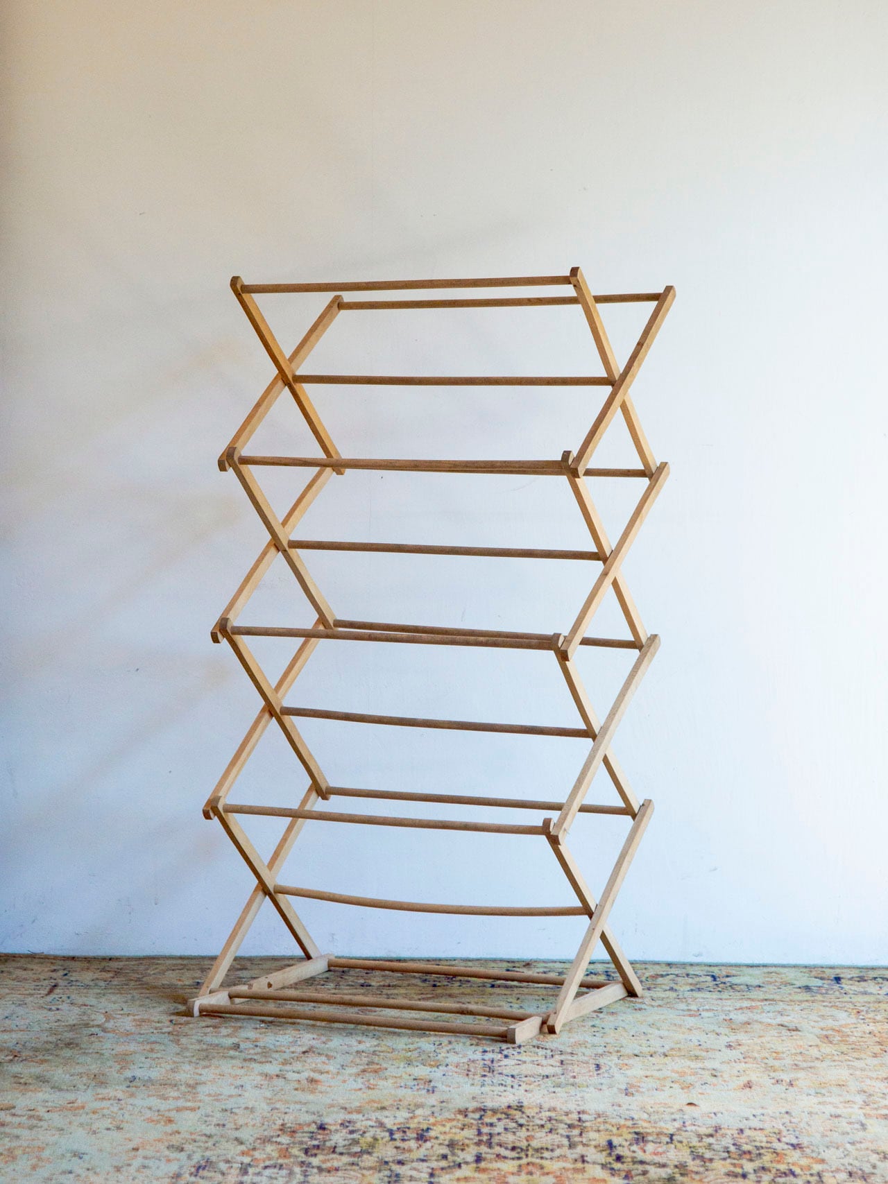 無垢材の色合いが優しい佇まいのタオルラックです。