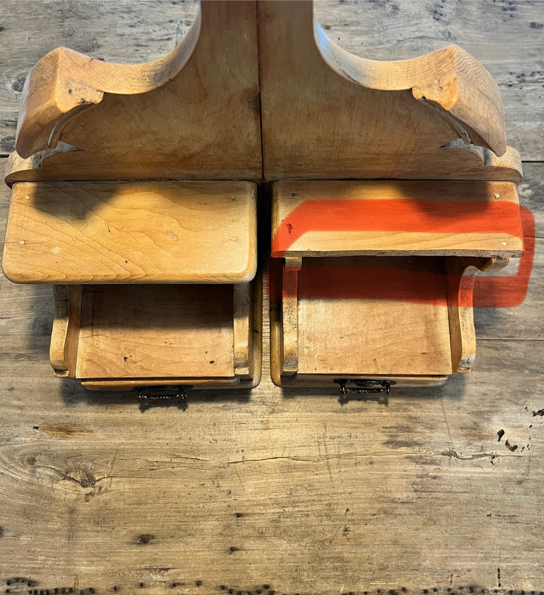 2つの引き出しが付いたフランスのアンティークシェルフ。